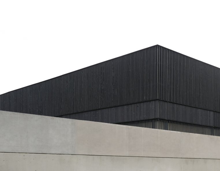 Livraison de la salle multi-activités d’Alvignac. Un projet en béton brut et bois brulé. une abstraction sur l’espace public qui s’ouvre sur son paysage collinaire.
